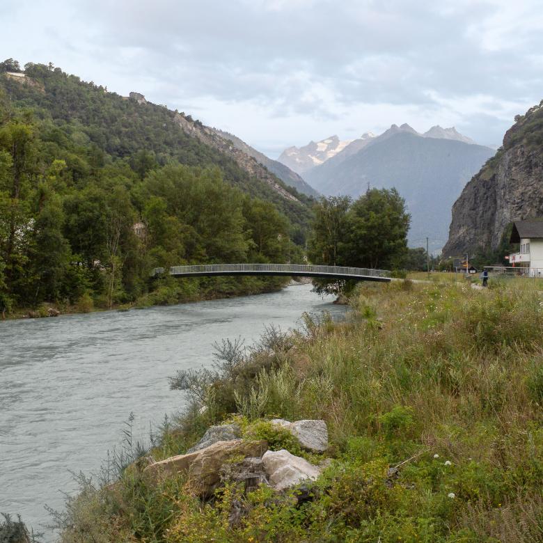 Bei starken Unwettern im Juni 2024 wurde der bestehende Fussgängersteg im Südegg, Visp, gesperrt. Insbesondere das Zwischenauflager Chatzuhüs wurde durch die immensen Wassermassen beschädigt, wodurch sich der ganze Steg versetzt hat und folglich einsturzgefährdet war. Der bestehende Steg wurde daraufhin entfernt. Für die Gemeinde Visp wird ein Projekt für einen neuen Südegg-Steg erstellt, welches dem Hochwasserschutz gerecht wird.