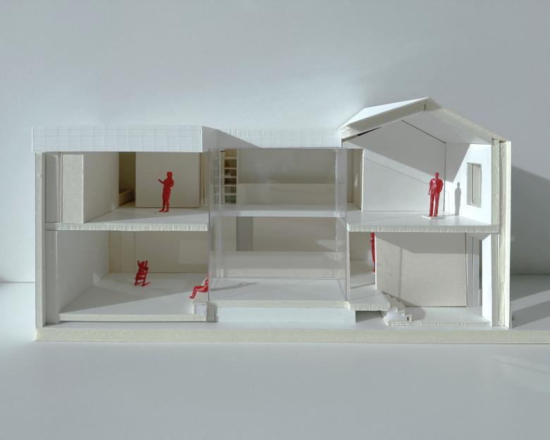Das bestehende Kino wird zu drei separat erschlossenen Townhouses umgenutzt, die als zusammenhängendes, eigenständiges Volumen im Strassenzug abgebildet werden. Die Wohn- und Arbeitsräume gruppieren sich auf unterschiedlichen Niveaus um einen zentralen Innenhof. Dieser ermöglicht trotz der einseitigen Ausrichtung des grossen, geschlossenen Bestandsvolumens eine adäquate Belichtung und entschärft die unmittelbare Nähe zum öffentlichen Raum durch die Orientierung ins Innere. Es entstehen Raumzonen mit differenzierten Sicht- und Aussenraumbezügen.