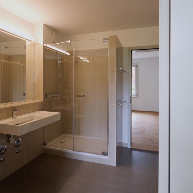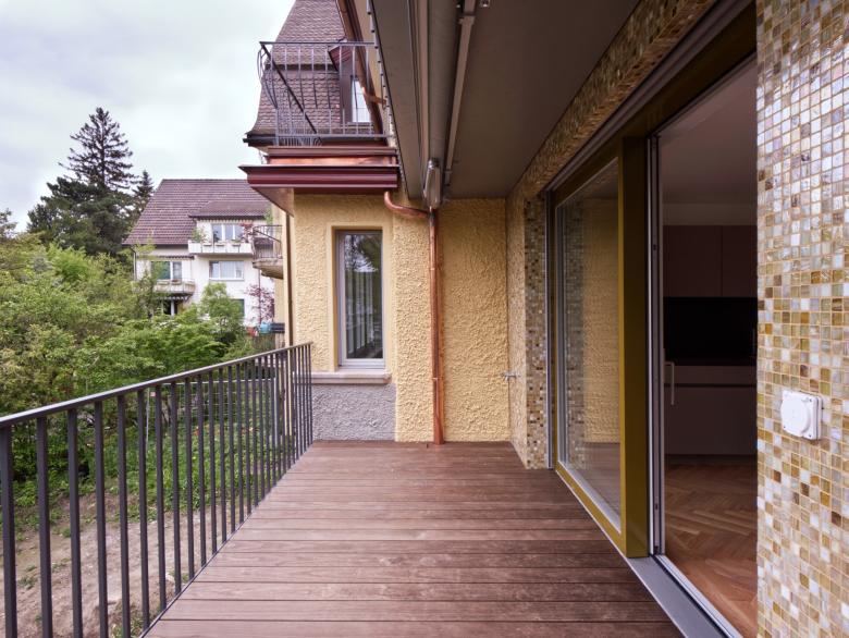 Das stattliche, mit der Nachbarliegenschaft zusammengebaute Einfamilienhaus von 1917 steht in einem durch-grünten Wohngebiet am Zürichberg. Die vier neuen EigentümerInnen wünschten die Umwandlung des Hauses zu je einer Eigentumswohnung.