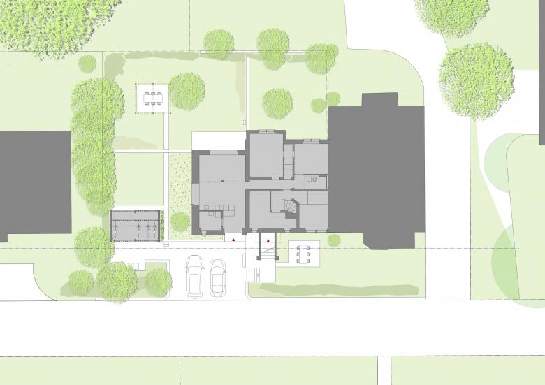 Die Überbauungsziffer war im Bestand bereits ausgeschöpft. Mit einer Aufstockung des 1926 angebauten Garagenteils und dem Ausbau des Untergeschosses konnte die Ausnützung aber noch etwas erhöht werden.