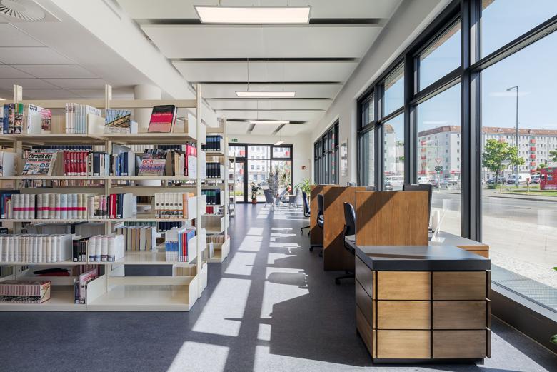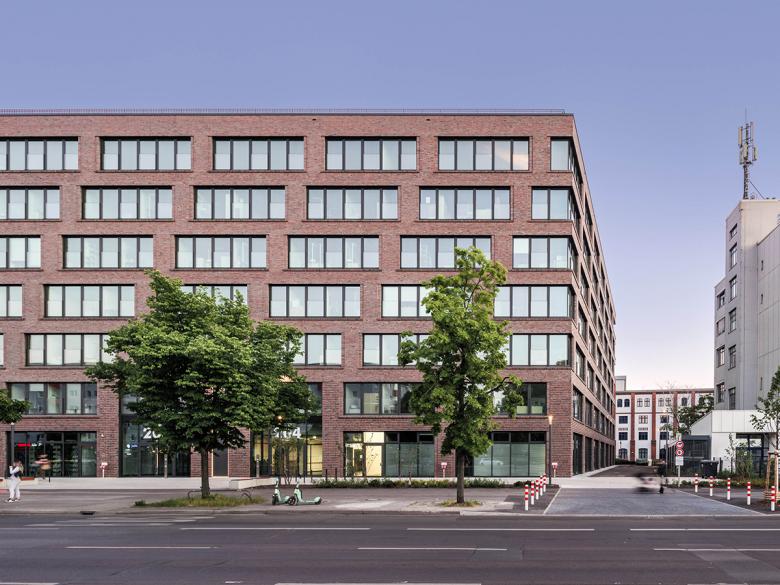 Auf dem rund 6.000 m2 großen Eckgrundstück zwischen Frankfurter Allee und Buchberger Straße im Berliner Bezirk Lichtenberg entstand ein modernes, trapezförmiges Bürogebäude mit begrüntem Innenhof und einer expressiven rostroten Klinkerfassade, die sich in Materialität und Farbigkeit an den historischen, Anfang des 20. Jahrhunderts entstandenen industriellen Bestandsgebäuden orientiert und einen neuen kontrastreichen Akzent zur sonst postmodernen Umgebungsarchitektur aus der DDR-Zeit setzt.