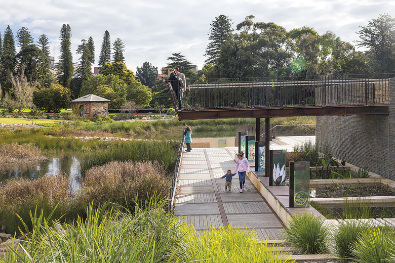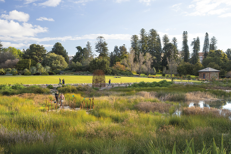 The Adelaide Botanic Gardens Wetland is located on First Creek, a highly urbanised waterway near the centre of Adelaide. The wetland ameliorates flooding, purifies polluted stormwater runoff, is the source for an Aquifer Storage and Recovery (ASR) system, provides habitat and is an educational and recreational resource.