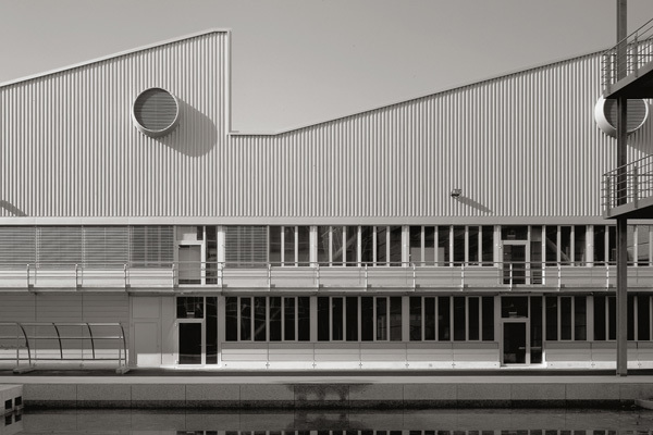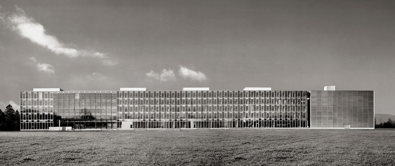 Entsprechend dem orthogonalen Raster des Masterplans für den Hauptbereich des Zentrums Zürich Nord entstanden für Baukosten von 120 Millionen Franken zwei Gebäude: ein Dienstleistungsgebäude für 1100 Mitarbeiter mit Konferenzzentrum und anschliessendem Parkhaus sowie ein westlich anschliessendes Produktionsgebäude mit 120 Werkstatt- und weiteren 60 Büroarbeitsplätzen. Schnelle Realisierbarkeit, minimiertes Kostenbudget und flexible Nutzbarkeit lauteten hier wie anderenorts die Vorgaben, die überdies mit architektonischer Qualität vereinbar sein sollten. Ein Stahlbetonskelett mit von der Fassade zurückgesetzten Stützen bot beim fünfgeschossigen Bürogebäude die Möglichkeit elementierten Bauens, durch welche sich die Bauzeit reduzieren liess; das Volumen ist nach dem Prinzip einer Kammstruktur organisiert, deren geschlossene, verglaste Front sich dem Park zuwendet, während die mit einem wolkenbügelähnlichen Gang im vierten Obergeschoss verbundenen, durch Höfe getrennten und mit dem Gerüst der Fluchttreppen versehenen Trakte auf der dem Produktionsgebäude zugewandten Westseite expressiv-industriell artikuliert sind. Die verglaste gebäudehohe Eingangshalle, von der aus die Konferenzbereiche direkt zugänglich sind, orientiert sich ebenfalls zum Park.