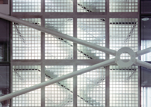 Die energetisch sinnvolle Pufferzone mit integrierten Treppen, Aufzügen und Infrastrukturboxen vermittelt zwischen der Hallengrossform und dem kleinmassstäblichen innerstädtischen Kontext.
