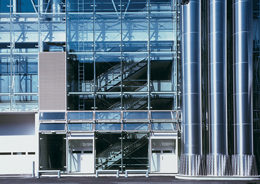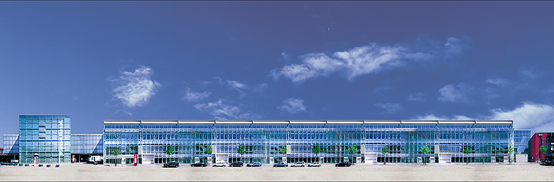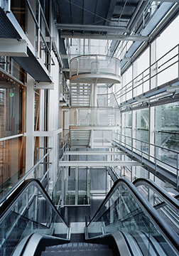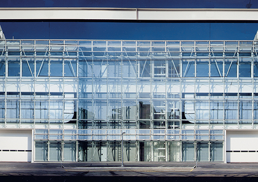 Der innerstädtische Grossbau besteht aus zwei aufeinander gestapelten Ausstellungshallen und einer unterirdischen Anlieferungszone.