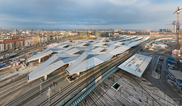 Als Knotenpunkt des öffentlichen Verkehrs mit einer skulpturalen Dachstruktur als städtebauliches Leuchtturmprojekt und Landmarke eines sich transformierenden Stadtviertels projektiert, gilt der Hauptbahnhof als Initialzündung für die Bebauung mehrerer Baufelder und das Anlegen des neuen Stadtparks auf der Basis dieses Masterplanes. Federführend bei der Realisierung des neuen Hauptbahnhofs Wien ist die ARGE „Wiener Team“ mit dem Architektenteam Hotz/Hoffmann-Wimmer. Theo Hotz Partner sind dabei verantwortlich für die das skulpturale Bahnhofsdach.