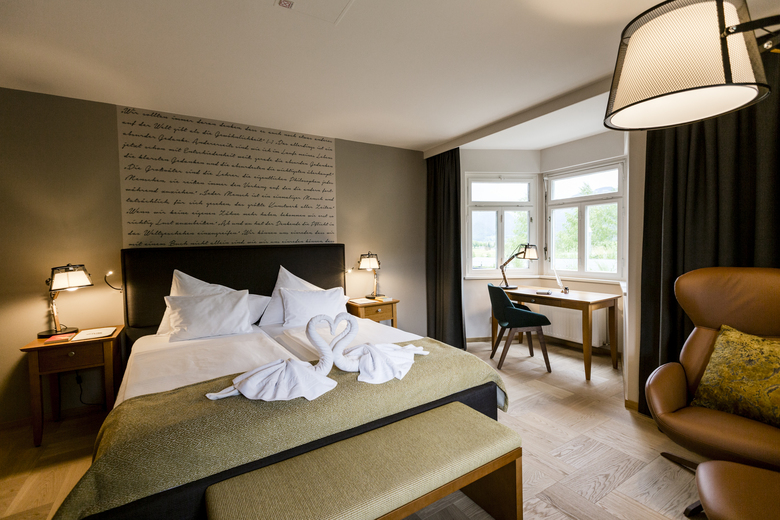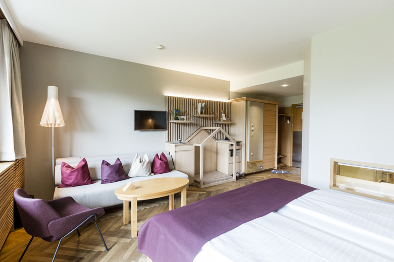 Der fabelhafte Blick auf die umliegenden Berggipfel im Ambiente der Alten Wasnerin kombiniert mit modernen Möbeln und harmonischen Farbkonzept - das sind die neugestalteten Suiten im Altbestand der Wasnerin. Die alten dunklen und knarrenden Böden wurden durch einen neuen hellen Eichenparkett mit einer besonderen Verlegeart ersetzt. Jede Suite hat ein eigenes Thema, welches mit diversen Accessoires und viel Liebe zum Detail in Szene gesetzt wird.