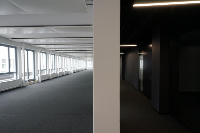 Nach der Rückgabe einer bedeutenden Mietfläche wird die gesamte Liegenschaft mit einem aufwertenden flexiblen Grund- und Mieterausbau im Markt neu positioniert. Der Grundausbau bringt die ursprünglichen Qualitäten des Inventarobjektes wieder zur Geltung und ermöglicht durch den Einbau eines zusätzlichen Fluchttreppenhaues auch offene Bürolandschaften.