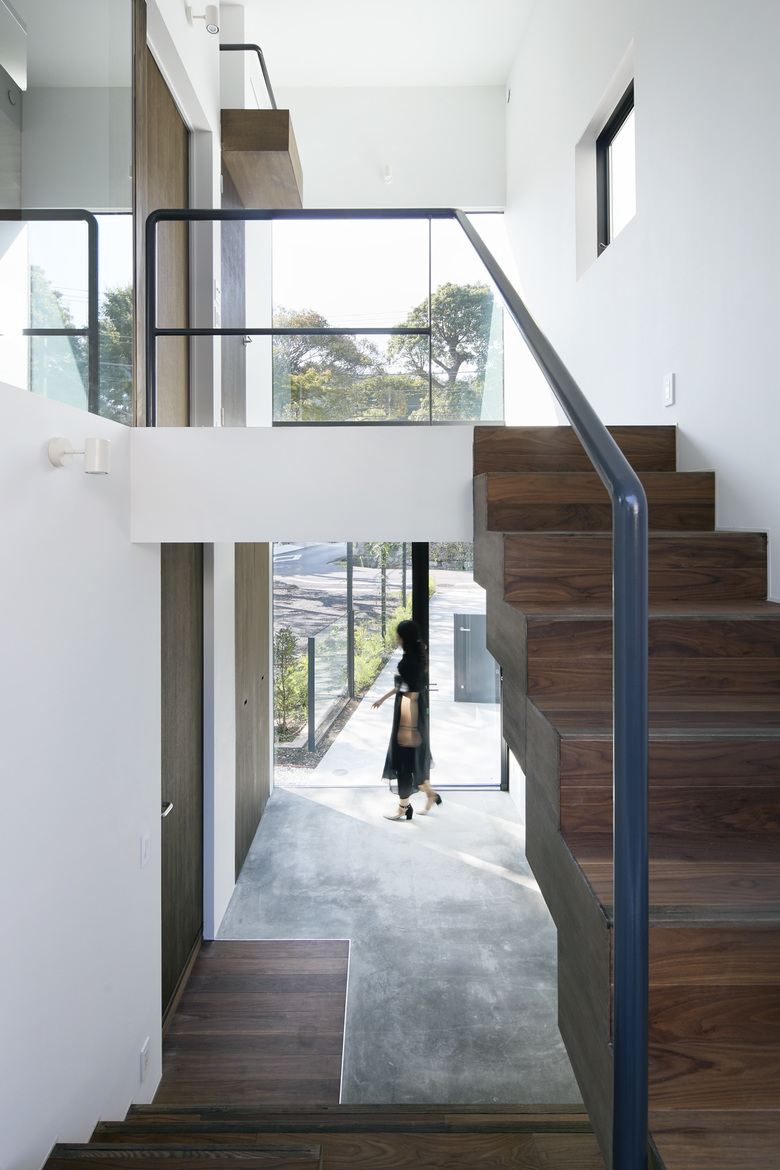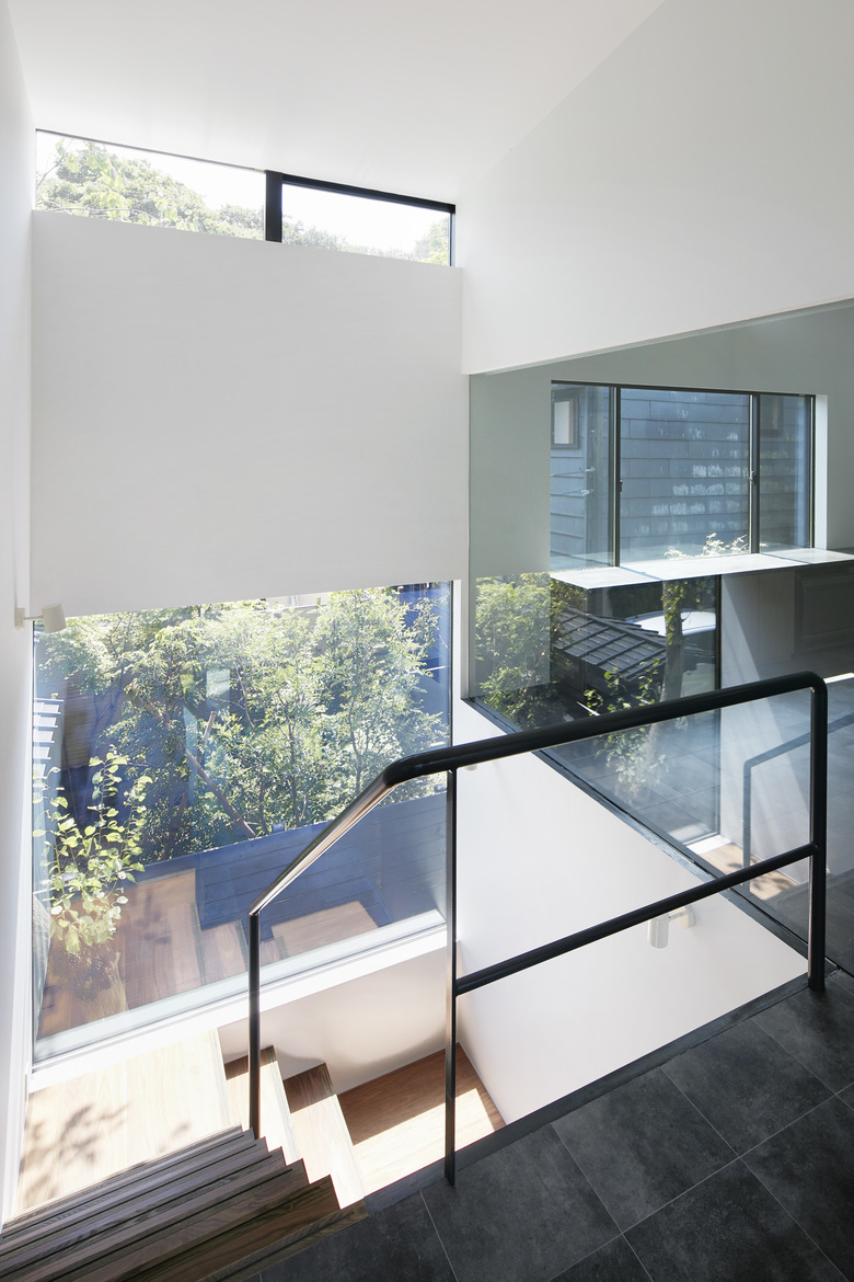 The space changes step by step from shrine to approach to staircase room to residence, aiming to create a loose connection between the residence and the surrounding environment.