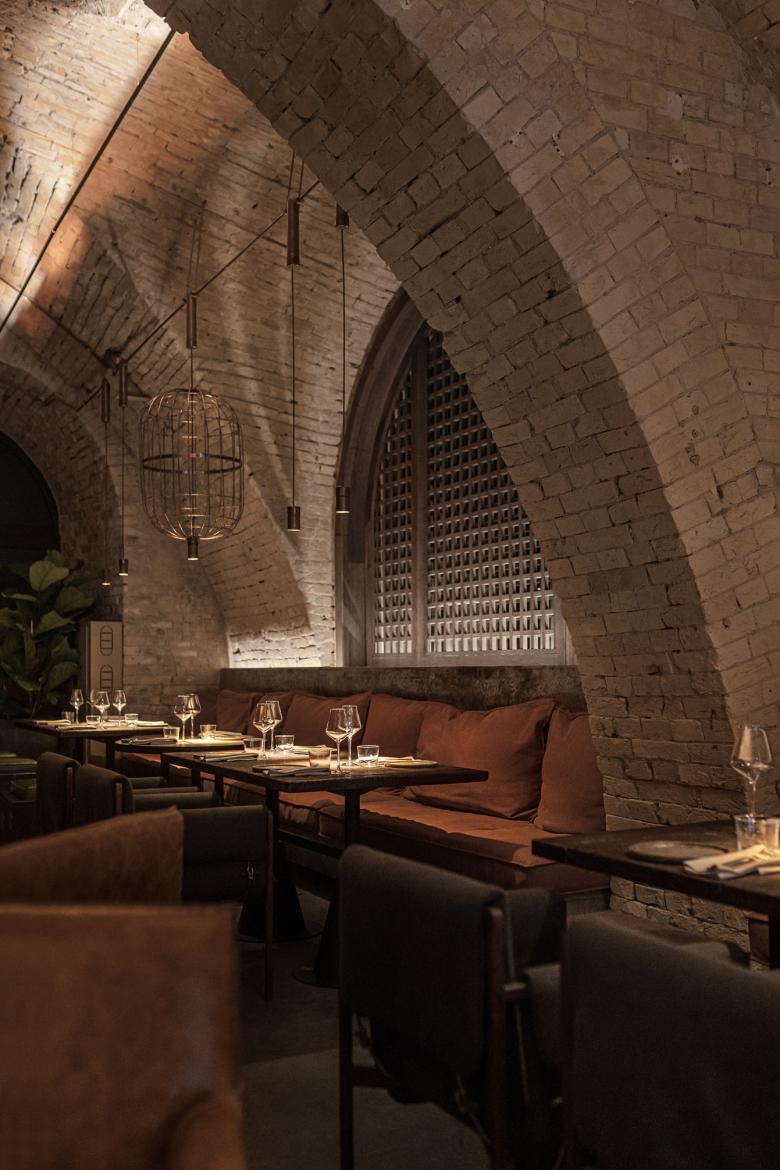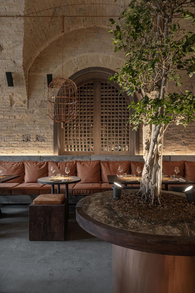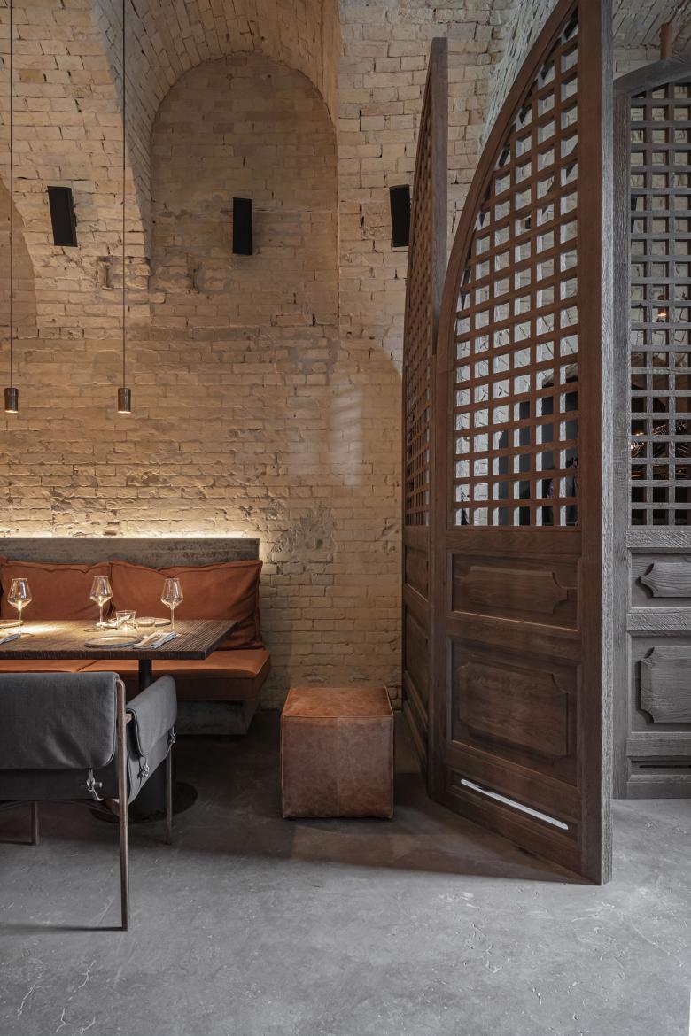 Literally “izakaya” is translated from Japanese as “a place in a liquor store” where you can come and drink a glass or two of wine. Thus, we have created an atmospheric, conceptually complete space. Brick walls, rough wood, oxidized metal, bare concrete matched with the warm and pleasant atmosphere created by the right accent light and greenery is the concept itself.
