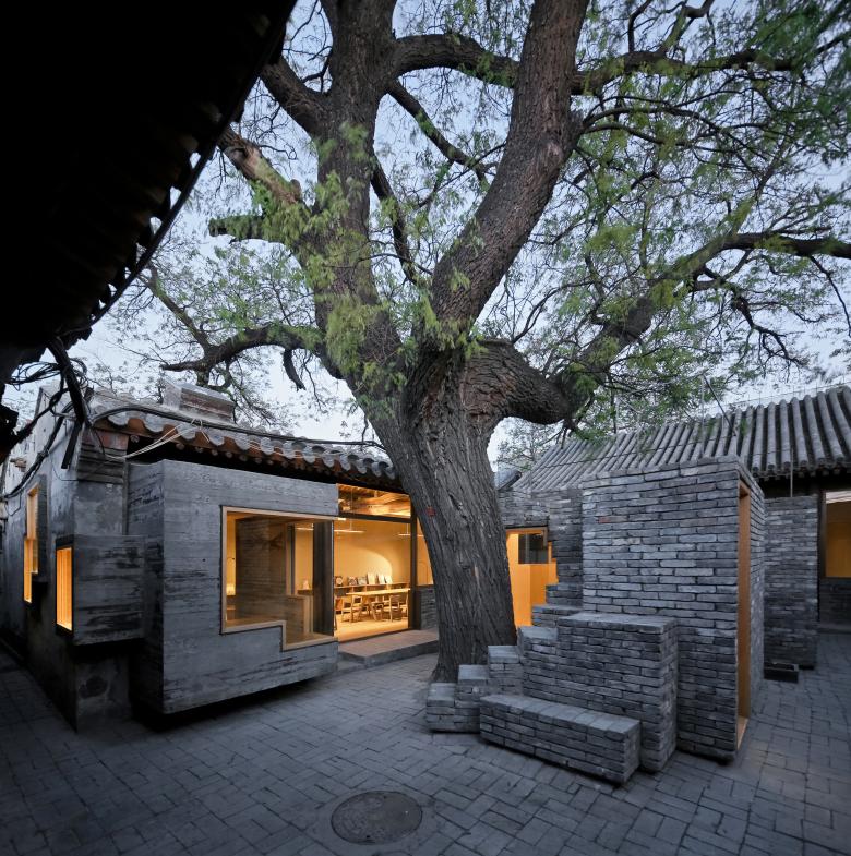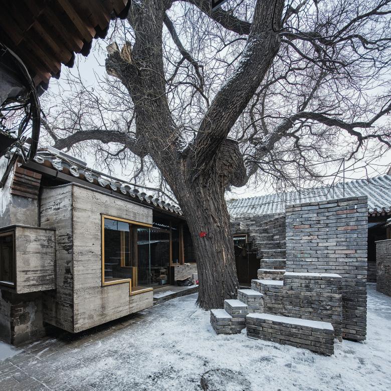 The small centre for culture and art is situated in a traditional Han Chinese district in the Dashilar subdistrict, to the south of the former inner city wall of Beijing, almost in direct proximity to the Qianmen Mosque at Cha’er Hutong Number 8. This subdistrict grew in a much more organic way in the urban development layout than the courtyard houses around the Forbidden City erected on a strict north-south axis, where the Manchu ethnicity, which was originally part of the imperial household, resided.