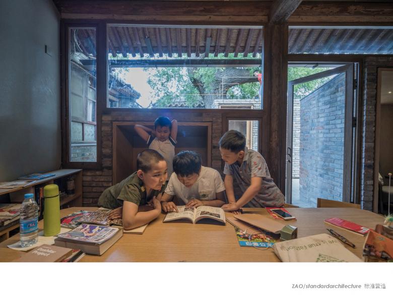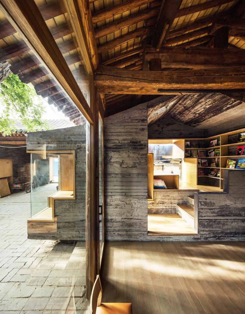 The architects made conceptual use of the structural layer as inspiration for redefining the spatial characteristics of an historical epoch. The fragmentary collage of materials was removed along with components that were no longer needed. In their place, the new extensions and installations set new aesthetic standards with just a few materials like concrete, grey brick, and natural wood frames for the doors and windows, thus calling to mind the old courtyard houses, but nevertheless without erasing the informal history. As a children’s library and meeting point for the neighbourhood, the centre brings a new public realm into the hitherto exclusively private courtyard. Some of the old residents have remained in their units, which means that public and private uses exist next to one another.