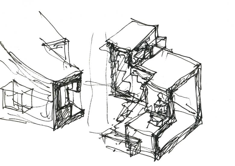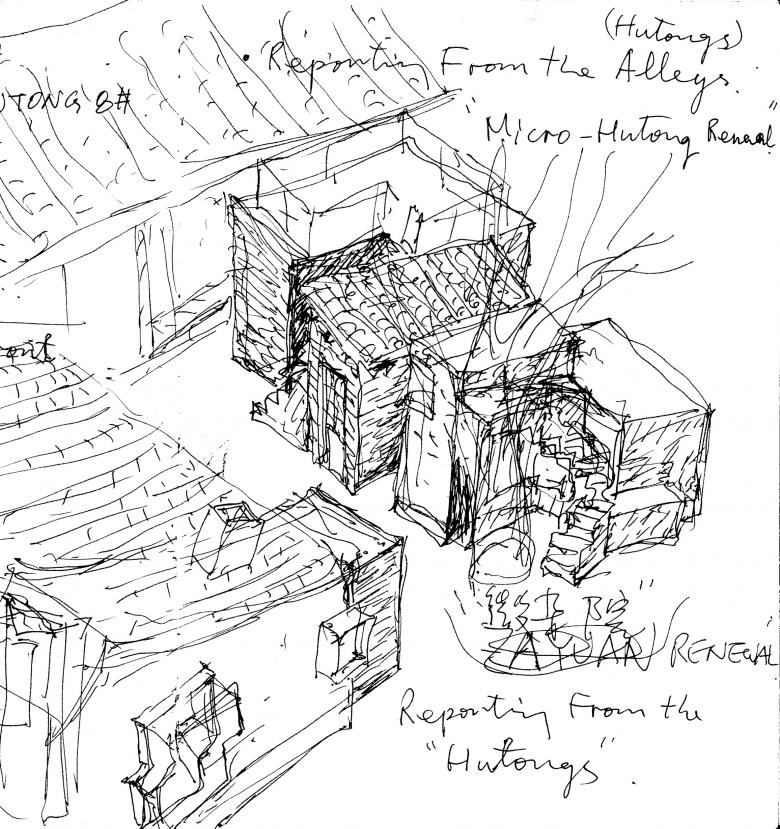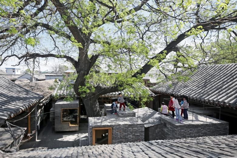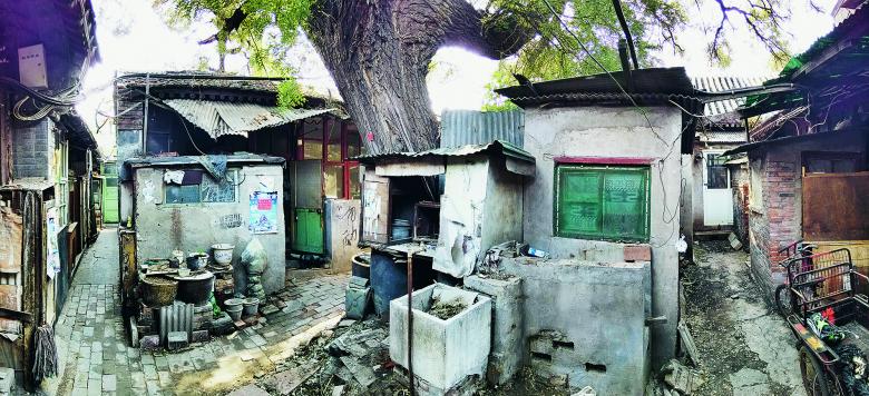 During the Cultural Revolution, more than a dozen families lived here in extremely cramped conditions. To expand the space available, everyone built their own kitchen in the courtyard without a plan or concept. These self-built, small architectures were created with found materials, which shaped the informal character of the district in a collage with the existing structures.