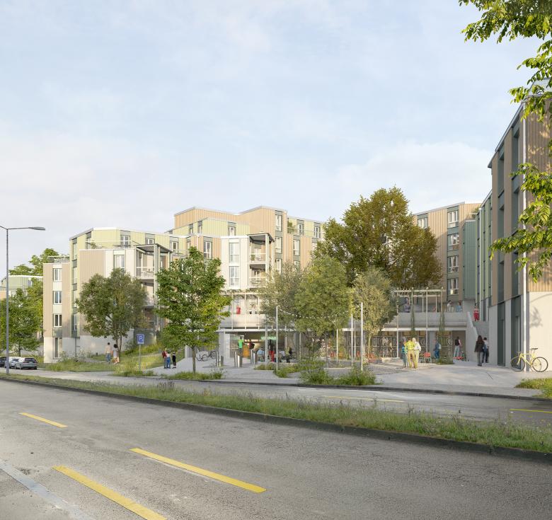 Das Grundstück liegt am Nordhang des Üetlibergs, direkt unterhalb des Friedhofs Eichbühl. Neben ca. 220 Wohnungen unterschiedlicher Grösse sind verschiedene gemeinschaftliche Nutzungen und ein Doppelkindergarten geplant.