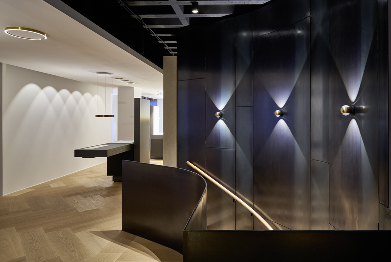 The second level in the basement is a walk-in storage space, focussed on the experience of light. The storage-shelves are hidden behind white large-format doors, making a white-cube which is used for demonstration of user interface, control and consequently how a whole space can be modulated by light.