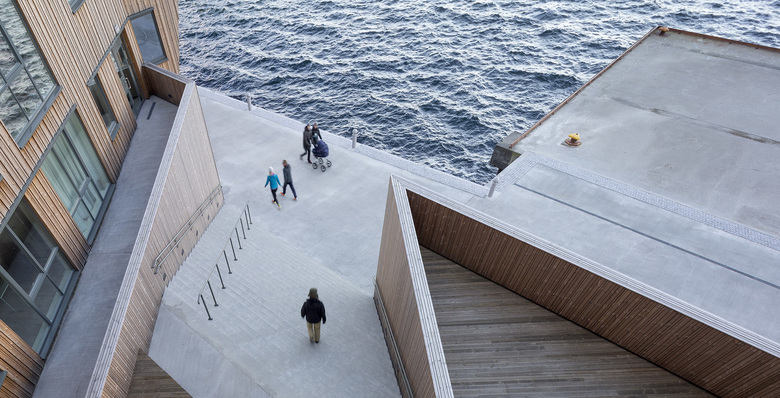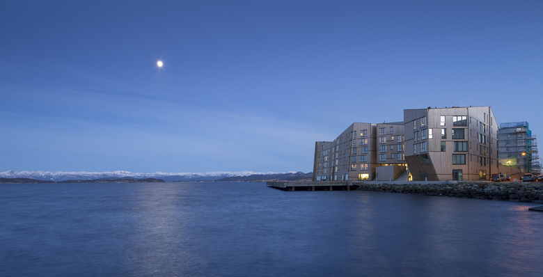 Norwegian Wood is designed in collaboration with Studio Ludo and is located at the urban seafront, encapsulating the essence of the city by developing the wooden architectural tradition and interpreting the Norwegian landscape. The shape of the building complex is thus based on a precise analysis of the site, as the architecture blurs the boundary between the urban space and the dramatic Norwegian landscape by appearing as a mountain range of wood on the edge between the city and the sea. The varying alleyways, the public squares and the interaction between residential and business units create a vibrant atmosphere, ensuring the area becomes a walkthrough with varying experiences.