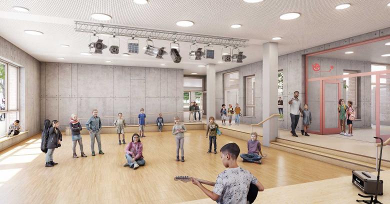 While the primary school sees itself as a protected learning and living space for the youngest children, the new extension to the Katharina Henoth Comprehensive School offers an open, urban learning environment for the 9th grade classes of the comprehensive school. The sports hall with two courts and the apartments for the caretaker's office complement the campus to create a sustainable school location. The result is a multifunctional educational location that facilitates exchange without sacrificing the independence of the schools.