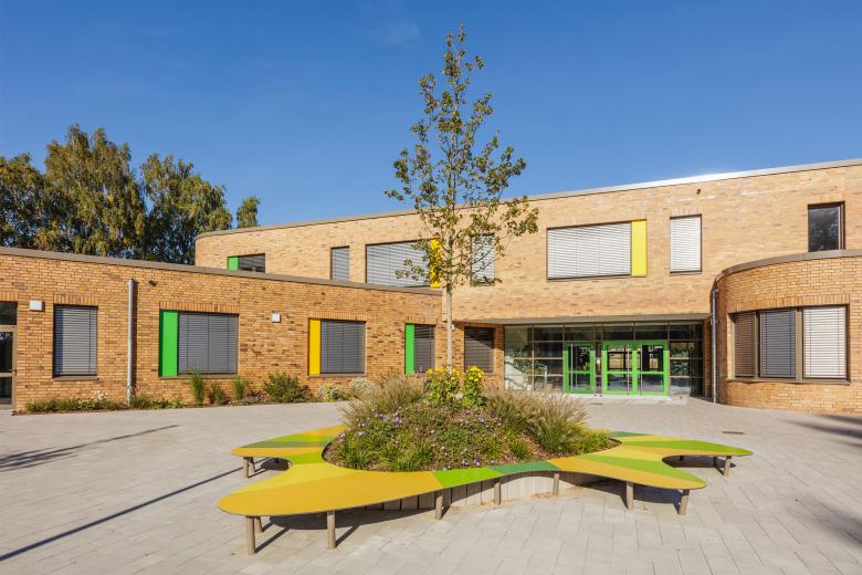 The new building for Zeven primary school has created a place of education that is as colorful and inviting as its school community. The new building blends harmoniously into the small-scale neighborhood and opens up to the street with a friendly welcome courtyard around a tree with a bench - a place to arrive and linger.