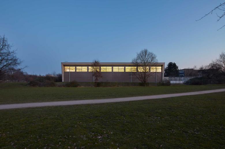The new two-court sports hall extends the school's existing sports facilities, which were previously covered by a three-court sports hall. The sports hall can be used independently and opens up through large window elements that bring glare-free daylight into the room, creating a pleasant atmosphere for sport and exercise.