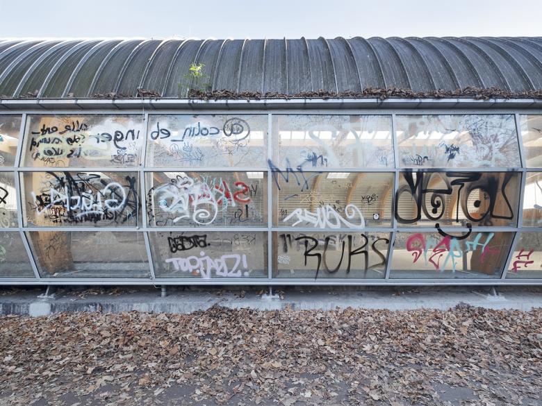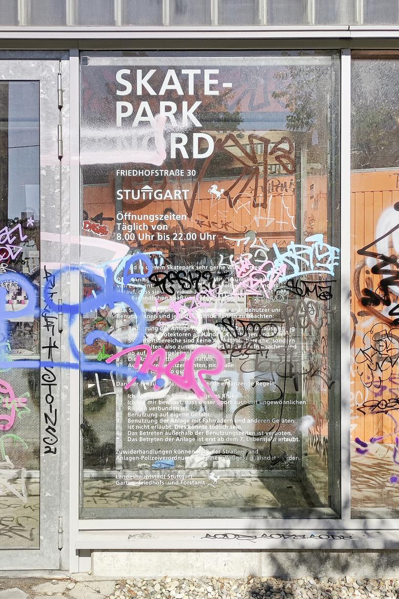 Einhausung einer Skateanlage am Pragfriedhof in Stuttgart