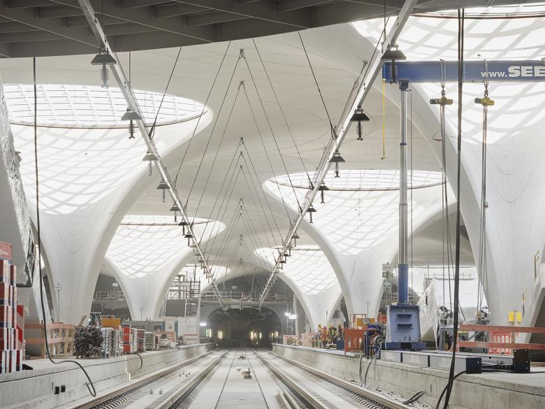 This weekend, half-time was celebrated in Stuttgart. We have now completed 14 of the 28 chalice-shaped concrete supports which form the roof of the new main railway station. The underground train hall will be illuminated by huge skylights, creating a bright, welcoming ambiance. Visitors will be able to walk on the station's roof, which will create a new urban space right next to the Schlossgarten park.