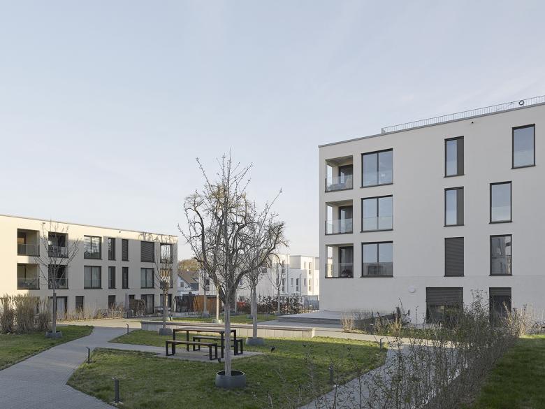 In der städtebaulichen Anordnung des neuen Quartiers "Am Sonnenrain" werden die Vorgaben des Bebauungsplanes erfüllt und gleichzeitig die Freiräume zur Schaffung einer hochwertigen Siedlung genutzt. Dies bedeutet vor allem, dass alle Möglichkeiten genutzt werden, um die blockartige Bebauungsidee aus dem Bebauungsplan weiter zu öffnen und das Blockinnere allgemein zugänglich zu machen. Der innere Raum wird über eine Erweiterung des öffentlichen Fußweges mit dem Quartier verknüpft und wird dadurch ein Ort der Möglichkeiten. Privates und Öffentliches können interagieren.
