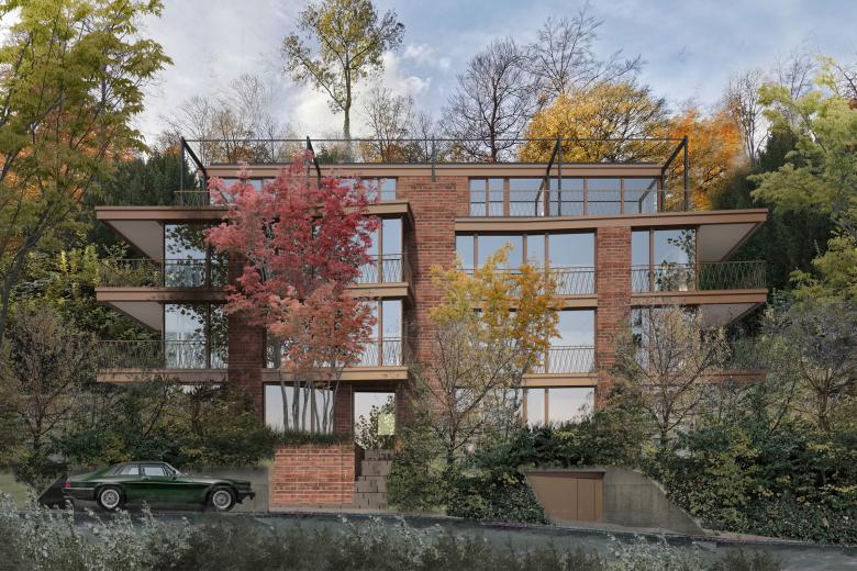 Die Parzelle liegt erhöht am westlichen Rand des Zürichbergs direkt vor der idyllischen Kulisse des Waldes. Der Ort strahlt eine besondere Ruhe aus, eingebettet zwischen Waldrand und der ruhigen Sackgasse "In der Hub". Mit seiner Klinkerfassade sowie der unprätentiösen Architektur fügt sich das Gebäude mit insgesamt 7 Eigentumswohnungen nahtlos in die idyllische Kulisse des Waldrandes ein.