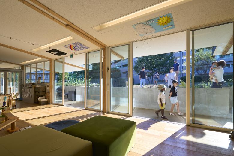 On a separate note, this is a project funded by crowdfunding, whose target amount was achieved in a matter of 17 seconds after the call started, and in the end, more than 1,000 investors applied for the project, raising nearly three times the goal. At the design meeting, the university president said, “It’s been our long-standing desire to build a nursery school at the university,” which I left me an impression that inner circle of the university which has more women by gender ratio had much expectation to the project. However, the features of this nursery school lie in creating new values and excitements around children while making the most of the university environment not just serving to their need for childcare. We feel that the expectation for the nursery school to provide more than its primary role of childcare against the backdrop of the society in general is coming from far beyond the framework of the university.