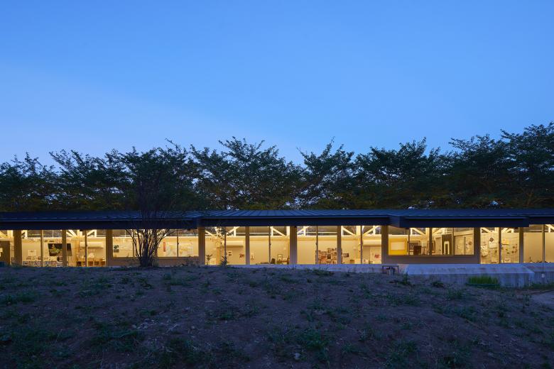 The university’s central plaza is the hub of campus circulation, and is literally the center of university activities, serving as the main venue filled with stalls for events such as university festivals. Creating “another plaza” to the university’s central plaza was the concept of designing the nursery school which was intended to add a “childcare” activity at the end of the tree-lined avenue that extends from the central plaza. The basic design principle is to restructure the space by placing a low-height wooden school building as part of the abandoned hill and to turn the childcare activities into a landscape beyond the tree-lined avenue. We could sense this concept is being nurtured through the bustling first anniversary celebration.