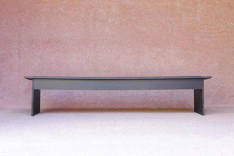 素材として車のバンパーやペットボトルのキャップなどの廃プラスチックを利用した再生プラスチック製のパネル、「エコマパネル」を使用した。座面は中心に向かって勾配を付けることで座面の雨水を中心から地面へと流すようにすると同時に、その勾配によってフィット感を与え、快適に座れるようにしました。