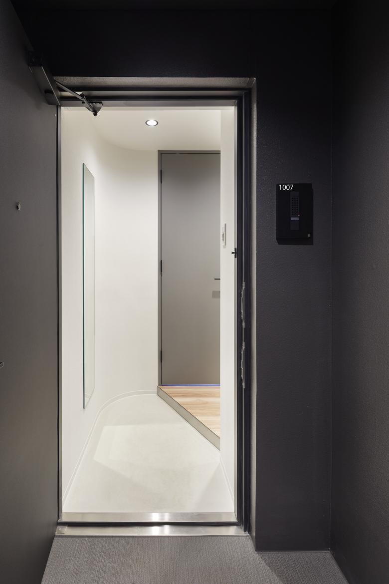 As mentioned above, the Japanese mansion blocks tend to look very similar due to the requirement of the balconies on the facade. We took extra care to make sure that the boilers and air-conditioning units placed outside on the balconies (per the norm in Japan) as discreetly tucked away as possible. Handrails, exterior walls and the balcony ceilings have been painted black. We wanted to bring out the light grey colour of concrete.