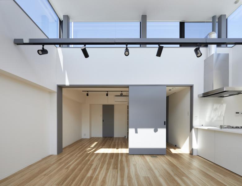 In Japan, balconies are almost obligatory for mansion blocks as a mean of incorporating escape ladders to avoid excessive internal staircases, allowing for more space for individual flats. This results in them looking formulaic and monotonous. The concrete fins are deliberately made not to reflect the internal structure. Thin calcium silicate boards are discreetly tucked away behind these fins. In case of emergencies, they can be pushed down easily and the residents can escape using the escape ladders installed on each floor.