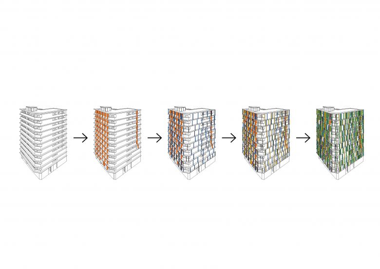 Facade designs tend to reflect the interior structures but we wanted to experiment and play against such a norm so that the new building resonated with the post-war buildings in the area. The individual flats feel more open and connected with the outside world through the thin concrete panels, retaining a sense of scale that is both human and urban.