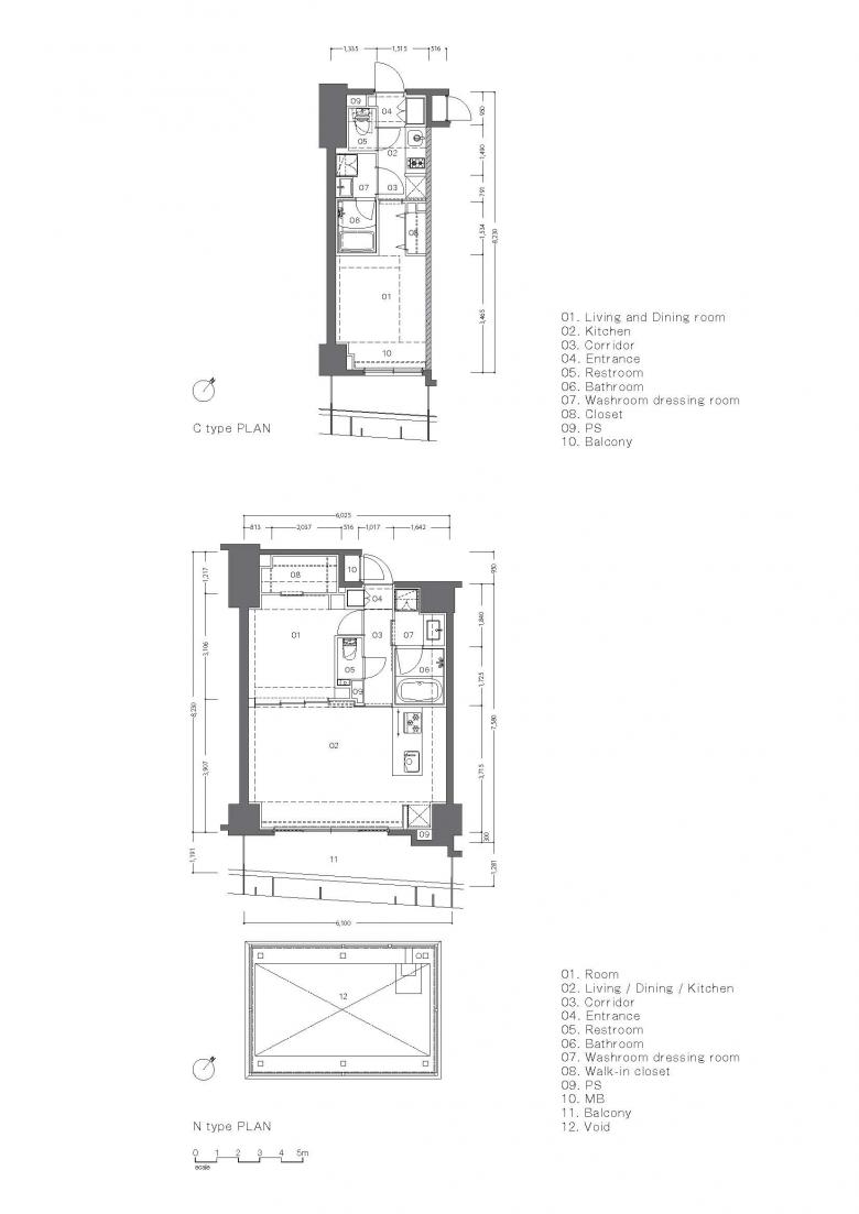 The Kannai Blade Residence consists of ninety-four privately-owned studio flats. The individual units are very small, with their floor areas ranging between 22m2 to 47m2. They are what the Japanese call ‘one-room-mansion’ suitable for single dwellers or young couples without children.
