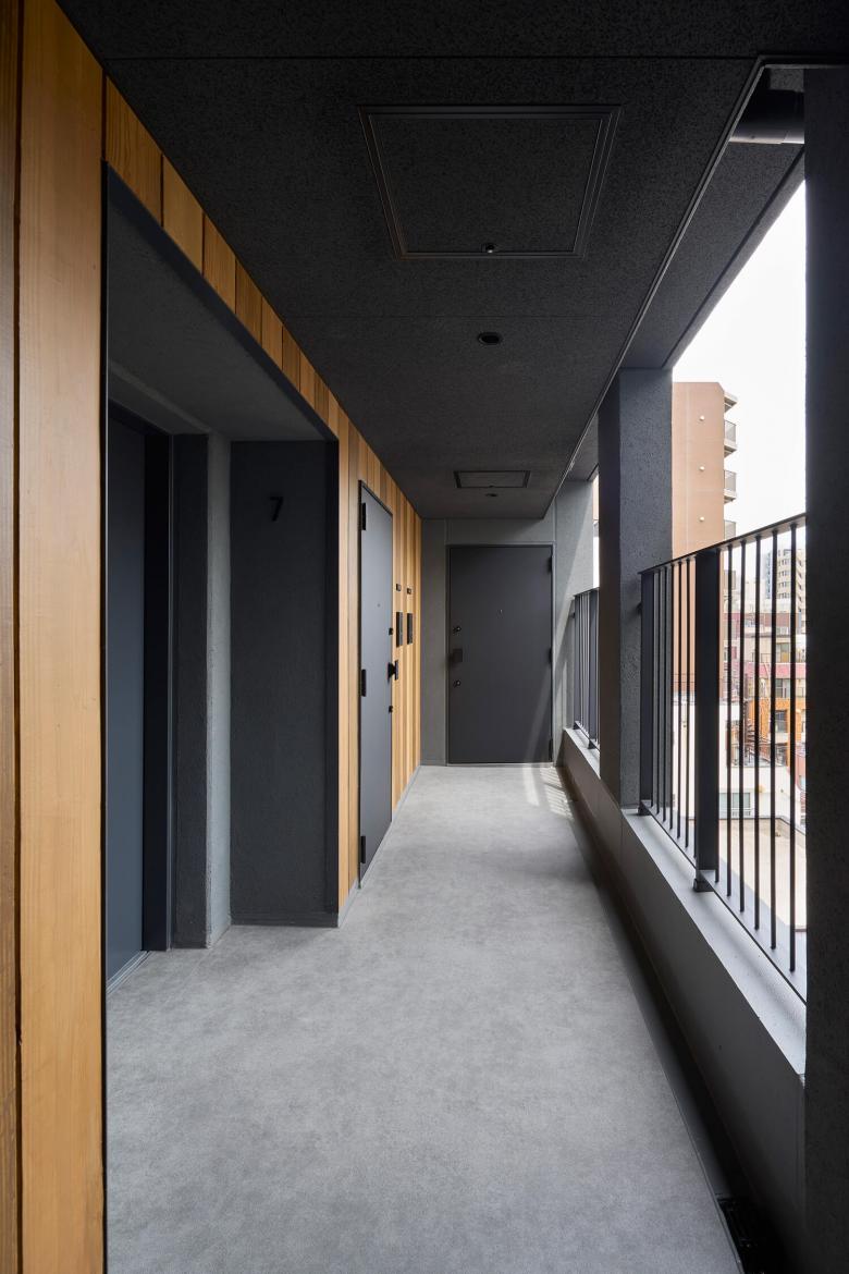 Located just a 3-minute walk from Shin-Okachimachi Station, this 9-storey apartment building comprises 39 units. Surrounding the area are traditional warehouses and small factories that have been in operation since the Edo period, creating a grid-like layout of low-rise buildings that still retain the charm of a traditional downtown neighbourhood. In recent years, the construction of high-rise apartments has been on the rise, leading to a sense of scale and fragmentation of the landscape. This residential complex was conceived as an attempt to redefine the relationship between the city and housing.