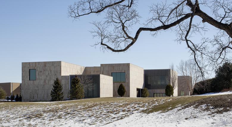 The grasslands, gardens, and forests of the Arboretum provide the inspiration for the museum’s design. A series of interlocking pavilions places the Palmer within the flows of the greater landscape. Each pavilion is clad in sandstone sourced from local quarries, evoking the geology of central Pennsylvania. The pavilions, in turn, define distinct courtyards and create space for terraces and gardens, designed in collaboration with landscape architect Reed Hilderbrand. The Dr. Keiko Miwa Ross Gateway—an overhead bridge joining the Palmer’s two main wings that house public gathering spaces and exhibition galleries in the west, and administrative offices, classrooms, and educational spaces in the east—creates a new gateway into the H. O. Smith Botanic Gardens, and the Pollinator and Bird Garden beyond, connecting people to landscape, and landscape to art.