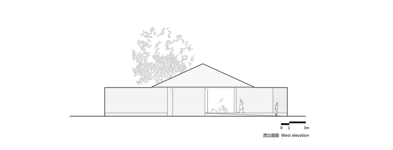 The project is situated on a flat site in the suburbs, which is surrounded by orchards, farmland and rivers, boasting beautiful landscape. On the west side is a grain processing factory, which is an enclosed architecture with pitched roofs designed by ARCHSTUDIO in previous years. There was originally a wooden house on the site, with a typical structure commonly seen a decade ago. To improve the quality of space, the house owner decided to demolish it and build a new architecture on the site. The newly built house mainly functions as a leisure and vacation space, serving for not only living but also receiving guests.