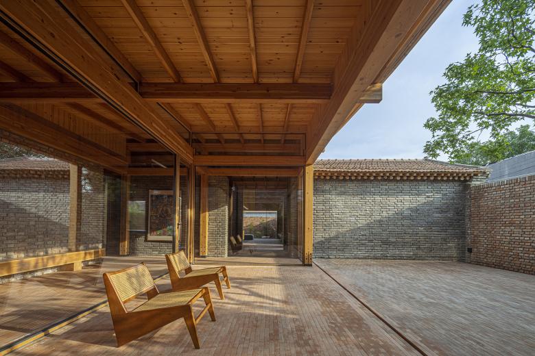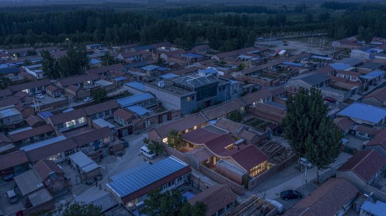 The project is located in an ordinary village on the outskirts of Beijing, a typical plain-based northern Chinese village mainly composed of one- and two- storey courtyard houses. Most houses in the village face south, and feature red bricks and tiles. Besides, there are also various added constructions built independently by local villagers for meeting their changing living needs, such as shanties with colored-steel roof or glass roof, which blend with the natural fabrics of the village.