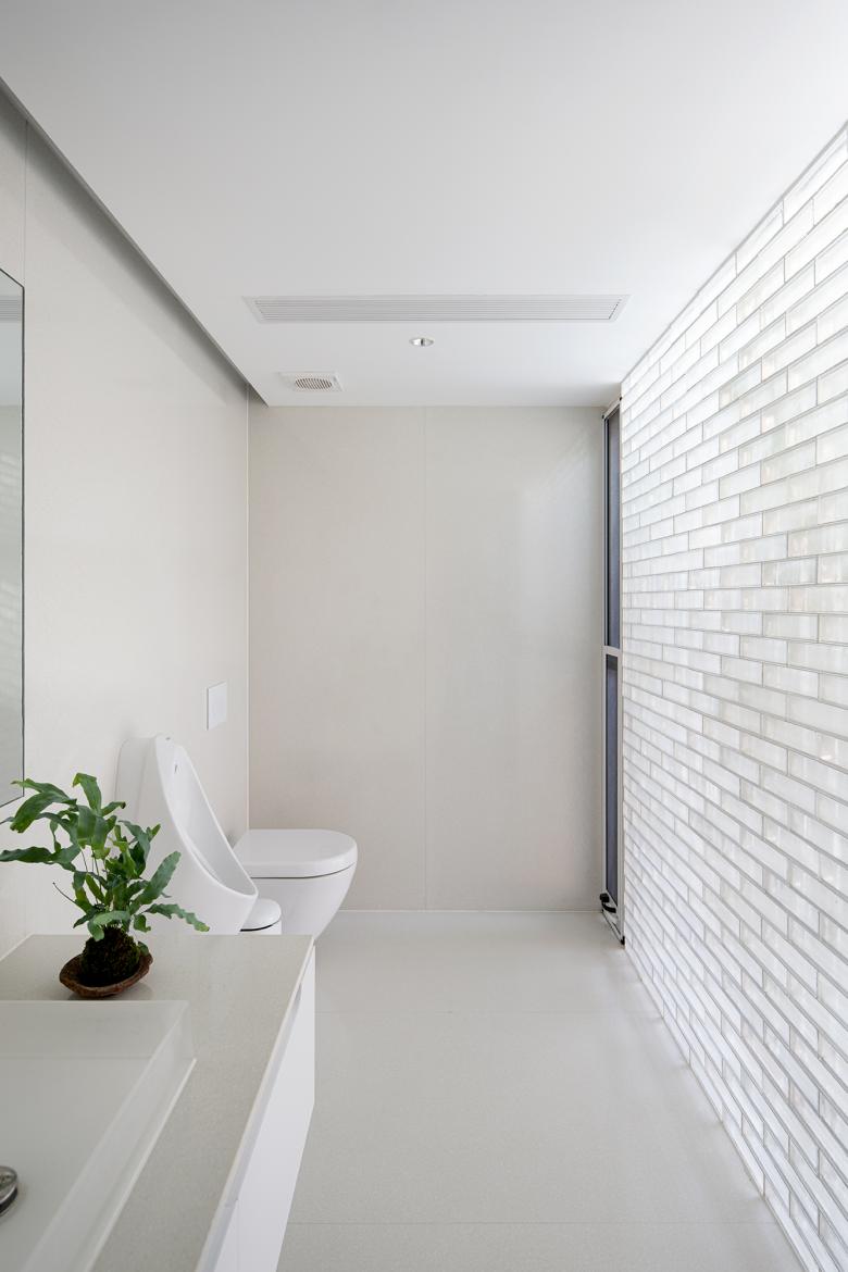 Main materials: laminated bamboo panel, gray tile, glass brick