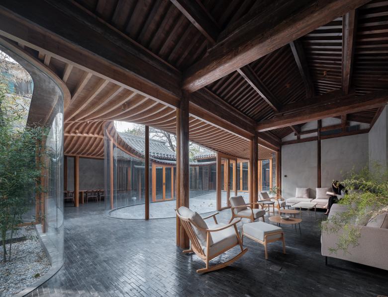 ARCHSTUDIO embedded a veranda — a basic element of traditional Chinese architectures, into the old Siheyuan to link up the seven separated pitched-roof houses. The veranda functions as a circulation route, reshapes the spatial pattern and layers, and provides a playful walking experience as well as fantastic views.