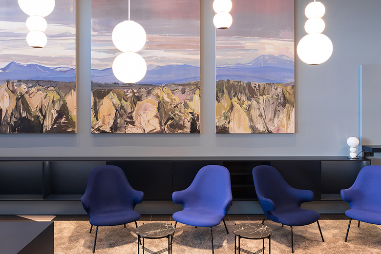 Neun Jahre nach Eröffnung des Hotels Stay2Munich in Brunnthal bei München übernahm Arnold / Werner gemeinsam mit laborette Raumgestaltung die Erneuerung der Lobby und des angrenzenden Bürobereichs. Ein mittig platziertes Sitzmöbelelement mit Ablagefächern, Steckdosen, USB-Anschlüssen und Lodenstoff-Polsterauflagen definiert einen Warte- und Aufenthaltsbereich, der den gesamten Raum gliedert. Die blaugrauen Holzbekleidungen an der Rezeption und Rückwand rahmen eine Getränke- und eine Infostation sowie den Zugang zu den Zimmern und verbessern zugleich die Raumakustik. Sämtliche Arbeiten wurden mithilfe eines Gerüsttunnels in zwei Bauphasen im laufenden Betrieb durchgeführt.