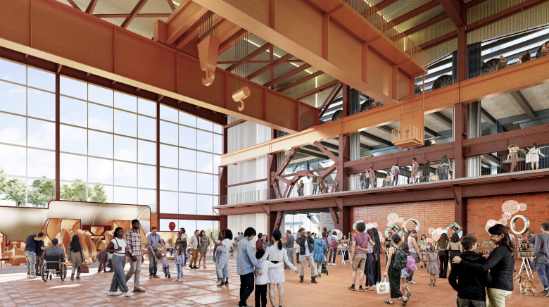 The eight-story boiler building will focus on recreation, including multiple play areas and food and beverage options. The turbine hall will be converted into a multi-purpose event space and speakeasy, while the adjacent office building will provide opportunities for marine and ecological learning as a laboratory with classrooms and research spaces. The design will preserve key aspects of the existing power plant, including the structural framework, smokestack, and administrative space.