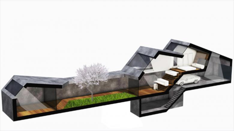 This has been made possible by means of a narrow floor plan layout of 5 x 35 m, with a three-sided firewall to allow the possibility of direct extension, an internal connection between the living levels, a central atrium garden and focused horizontal and vertical lighting areas.