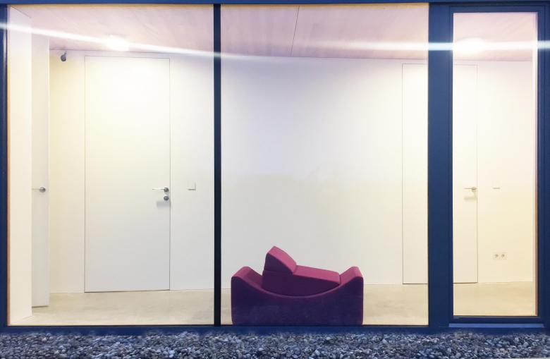 The wooden structure was erected from prefabricated wooden panel elements and a prefabricated, multi-layered glued solid wood ceiling with a soffit of silver fir within 3 days. The simple interior is designed for maximum functionality.