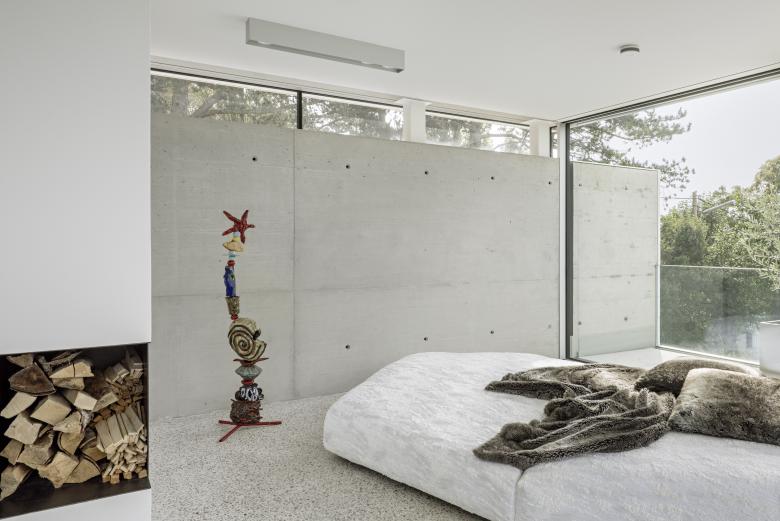 On the other hand, House Rock blends into the hillside, its street-side closure contrasting with the extroversion of the tower-like lookout and the almost complete opening towards the west-facing terrace and pool.