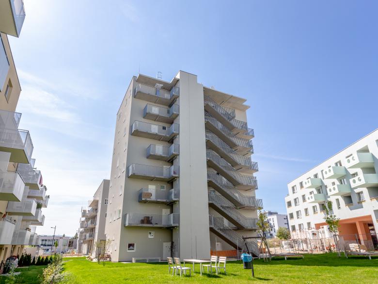 The "mietgestalten" Wildgarten residential building is a rental housing development, but as in a building group project, the owners, in this case the future tenants, work out the design of the common areas and the apartments in a collaborative planning process with the planners. With the help of Eva, a design assistance program developed by SWAP Architekten and Caramel Architekten, a wide range of possible floor plan layouts were developed in advance. These were then transferred to individually appropriated common areas and apartments during the collaborative planning process with tenants. Thus, in addition to the highly diversified common areas, 44 individual apartments were created that are also adaptable for future tenants due to their arrangement around a few vertical supply lines and supports. The apartments are divided into two houses, a high point house and a low long house with a shared roof terrace, which are connected to each other on the first floor by indoor and outdoor spaces that can be used collectively.