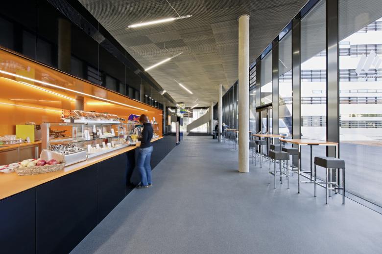 The spacious glazed interior atriums connect the floors with each other, allow light to fall into the lower levels and thus call for a new science working atmosphere of communication.