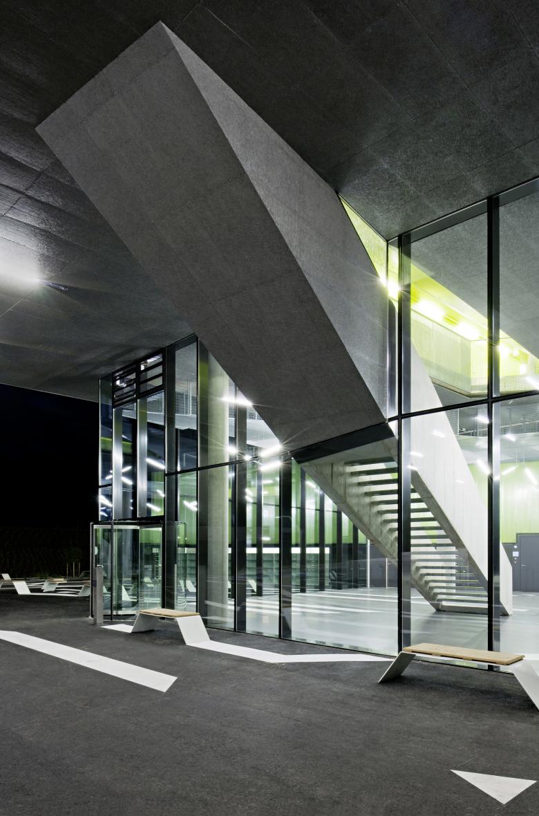 The first construction phase, the Mechatronics, opened in October 2009, already showed how the landscape flows between, over and through the building, with its floating office wings, interlocks with the area and ultimately merges with the building to form a newly interpreted campus.