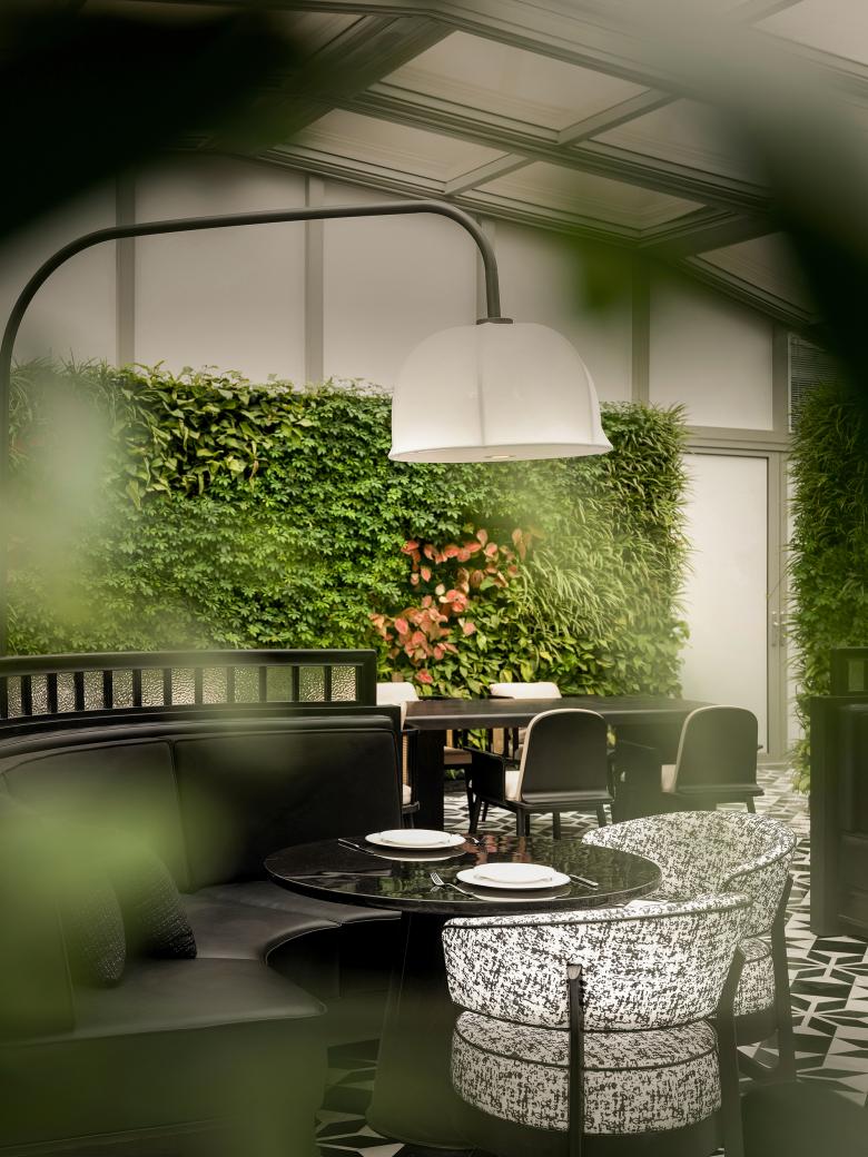 Sunlight pours through the glass skylight, subtly illuminating every corner and enhancing the restaurant’s visual atmosphere. The open kitchen and dining area maximize the influx of natural light, generating a dynamic and transparent vibe.