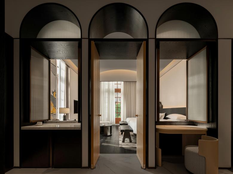 The guest rooms feature a prominent display of romantic French lines, and draw on a core element of French architecture, the arch, as the motif. By incorporating the aesthetics inherent in the architecture, the design creates diverse spaces and rich visual experiences.